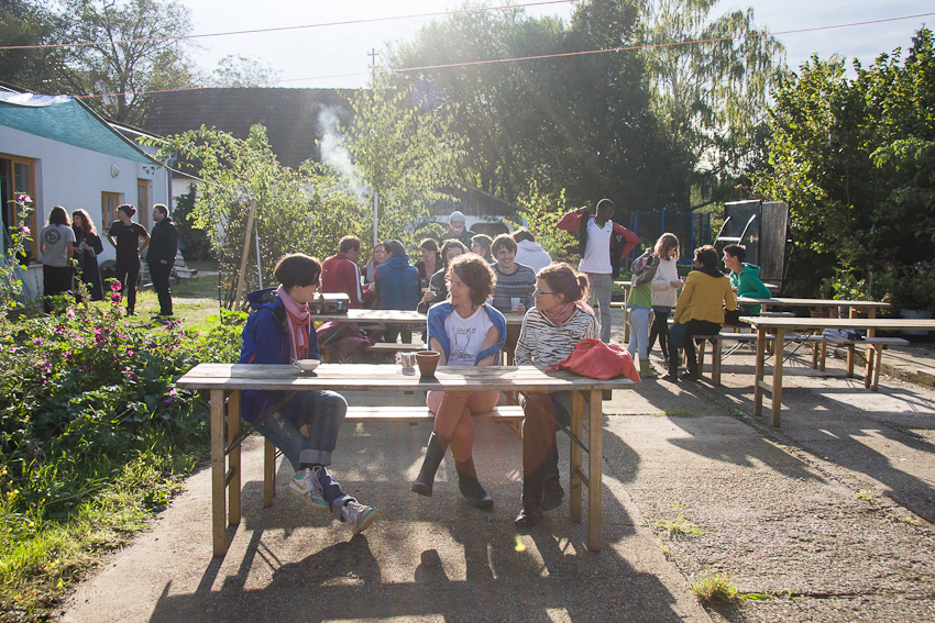 • große, gemütliche Küche (wird auch von Hausbewohner_innen verwendet) mit Kochinsel, Couchecke, Esstischen, im Sommer auch eine Außenküche