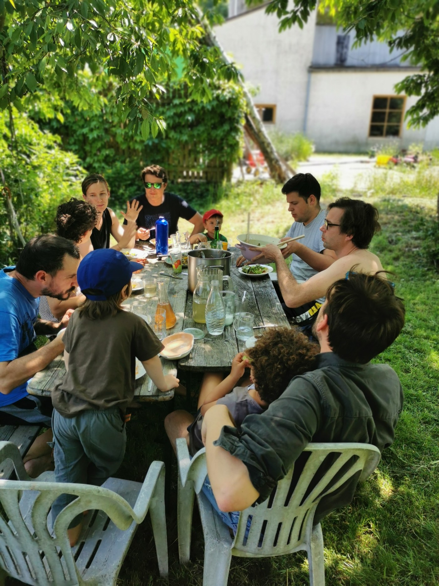 Zur Zeit bewohnen die Mühle 6 Erwachsenen (in ihren 40ern) und 3 Kinder (4-8 J) teilzeit – das heißt die meisten von uns sind derzeit nur am Wochenende da (und auch nicht jedes). Wir alle haben unseren Lebensmittelpunkt derzeit in Wien, verstehen die Mühle aber nicht nur als Wochenendhaus, sondern als kollektives soziales und politisches Projekt, in dem wir alternative Ideen der Entscheidungsfindung, der Arbeitsorganisation und der Finanzierung ausprobieren.